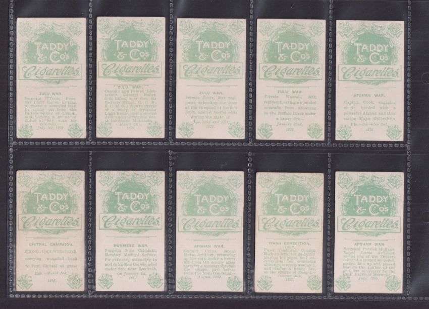 Cigarette cards, Taddy & Co, Victoria Cross Heroes (1-20), (set, 20 cards) (gd)