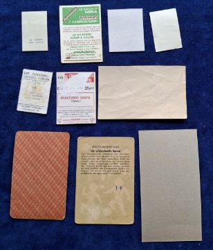 Trade cards, selection of cards covering 3 different players, from many series, Omar Sivori (7 + 1 duplicate), Francisco Gento (10), Luisito Suarez (5), all cards from overseas issuers, many anonymous unbranded but also includes Ediciones Este, Panini,