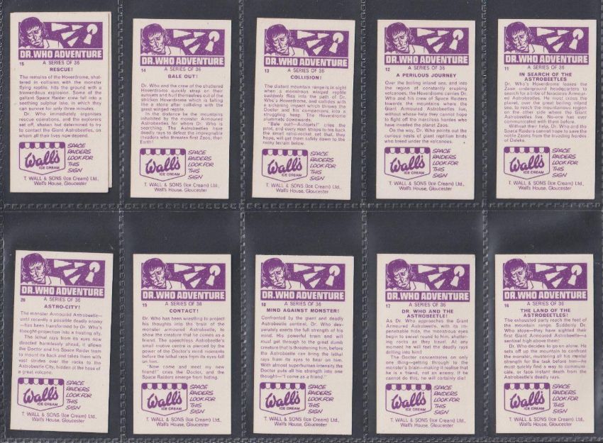 Trade cards, Walls Ice Cream, Doctor Who Adventure (set 36 cards) (vg a few gd)