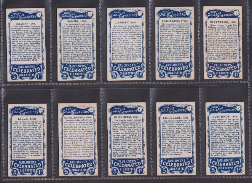 Cigarette cards, Faulkner's, Our Gallant Grenadiers (1-20) (No I.T.C. Clause) (set, 20 cards) (gen. gd)