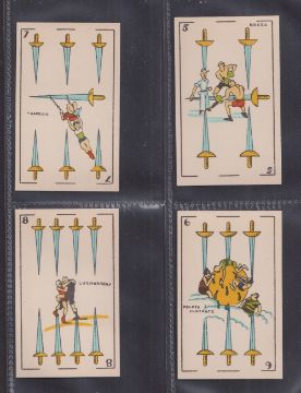 Trade cards, Spain, 'Cine Manual', set of 48 playing card style cards including artist drawn images of sportsmen, cinema stars etc, includes Ricardo Zamora, Charlie Chaplin, Max Schmelling etc (vg).