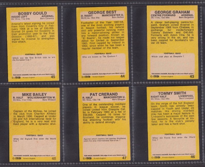 Trade cards, A&BC Gum, Footballers 1968 yellow backs 1st & 2nd Series (2 sets 101 cards total) series includes George Best (gd+) (gen gd/better a few with slight toning, near gd, both checklists unmarked)