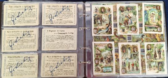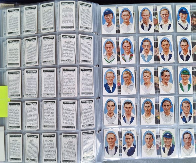 Cigarette cards, large collection in 4 standard size modern albums, 1 large modern album & a few loose. Sets and part sets including Wills Cricketers 1908 (missing one card), Churchman Cricketers (set), Players Arms & Armour (set) etc plus many part sets including Barratt TV Huckleberry, Gallaher Fables, German Film Stars, Wix Henry etc. Also 35 Liebig apparently complete sets all in the S768-S850 range. A few thousand cards in total (very mixed condition throughout gen fair/gd)