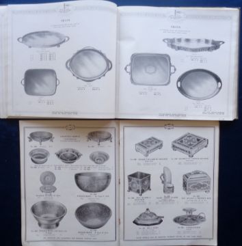 Advertising, 2 Product Catalogues to comprise Walker & Hall circa 1900 hardbacked showing a selection of goods to include gold, silver, silver plate, cutlery, cabinets, crystal, pewter, trophies etc (2 pages with damage) and Kinco Brassware 1929 showing decorated syphon holders, jardinieres, ink stands, bells, candlesticks, smoking equipment (1 page with item cut out) (gen gd)