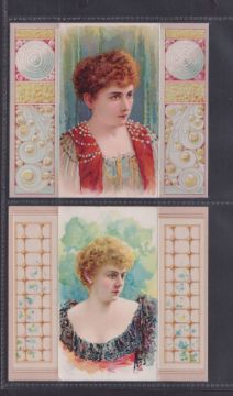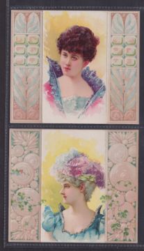 Cigarette cards, USA, Duke's, Beauties, Folders, 'P' size, (back in red on white), ref. N96, pictures nos 2, 8, 13 & 18 (gen. gd) (4)