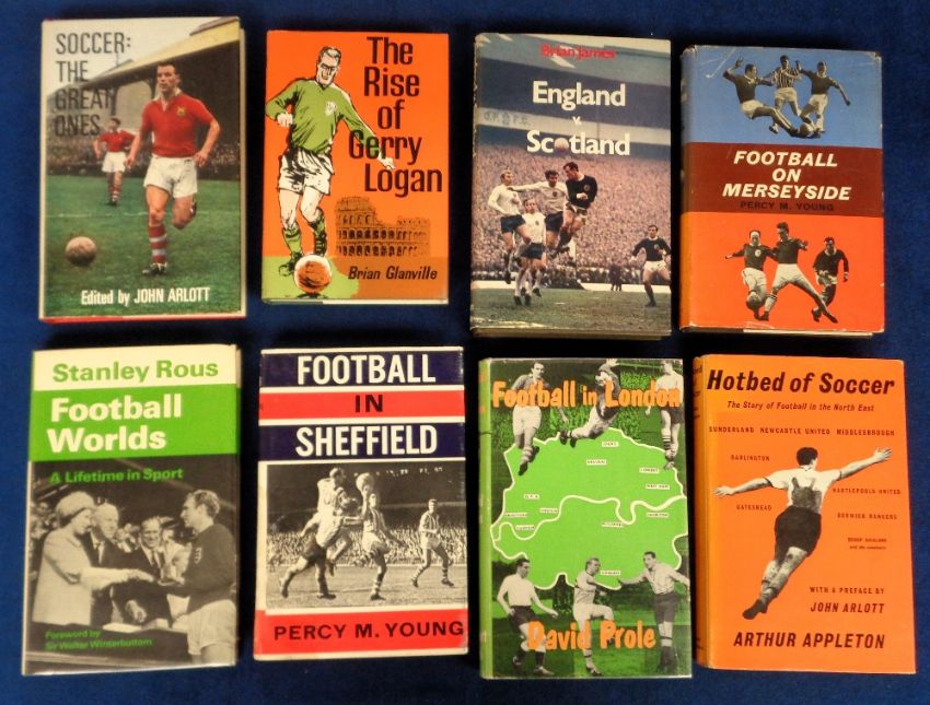 Football books, a collection of 20 hardbacked books inc. Football in London by D. Prole 1964, England v Scotland by B. James 1969, 'Hotbed of Soccer, The Story of Football in the North East by Arthur Appleton 1960, Football on Merseyside by Percy M. Young 1963, Alf Ramsey Talking Football 1952, Football in Sheffield by Percy M. Young 1962 etc, all with dust jackets (gd).