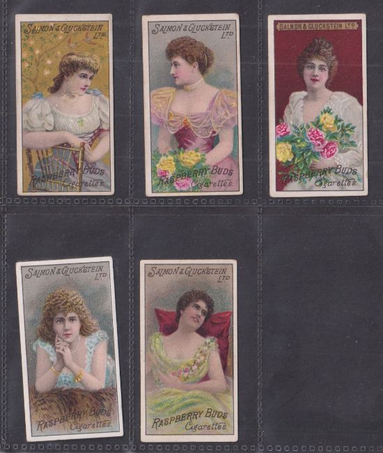 Cigarette cards, Salmon & Gluckstein, Pretty Girls RASH 5/6 (Tobacco Index Handbook ref H8 fig 8). Missing no 18. (4 cards, pictures 13 15 16 17 all about / near gd & 14 grubby back)