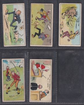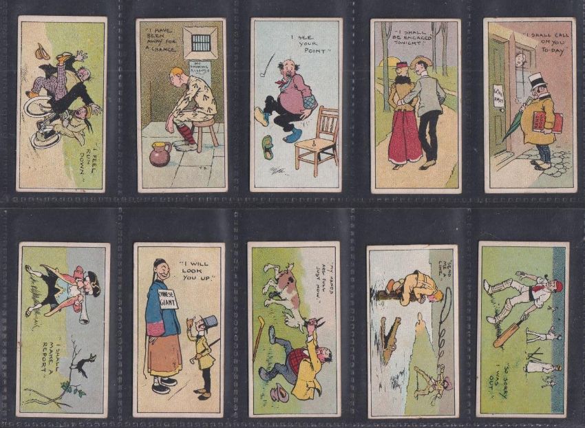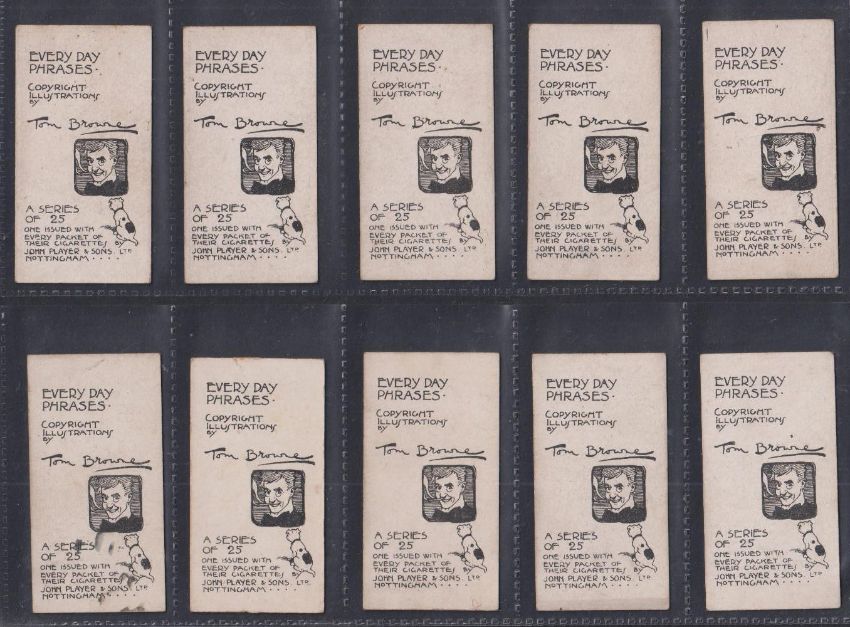 Cigarette cards, Player's, Everyday Phrases by Tom Browne (set 25 cards) includes Golf & Cricket subjects (all slightly grubby fair/ some near gd)
