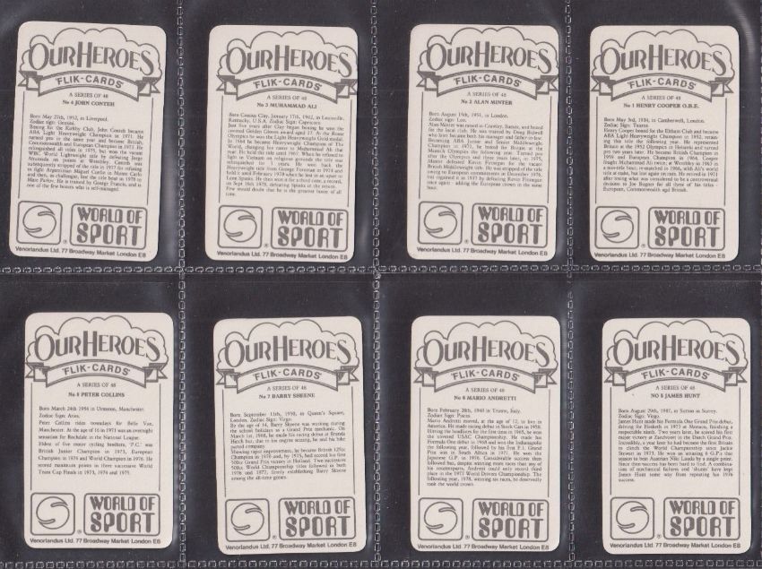 Trade cards, Venorlandus, Our Heroes World of Sport (set 48 cards plus empty unused album) includes Muhammad Ali, Jack Nicklaus, Pele etc (vg)