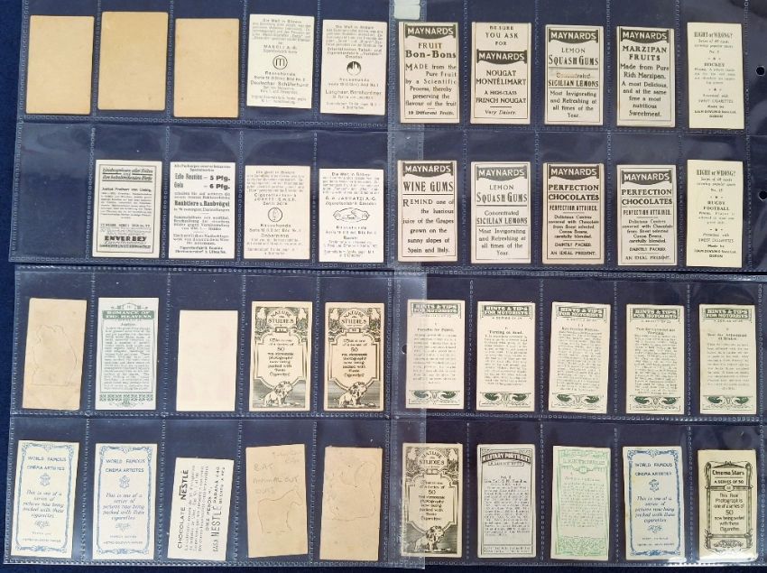Cigarette & trade cards, over 110 more interesting cards, diverse mixture including BAT, Barratt, Clevedon, Maynard, Allenbury etc, subjects include Film & Entertainment, Sport, Nature etc (gen gd a few fair)