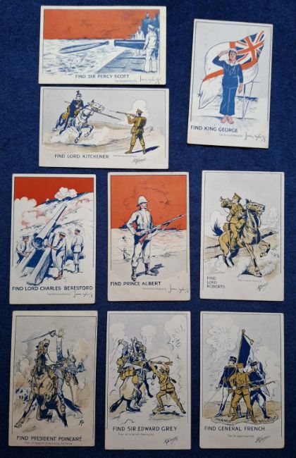 Postcards, Miscellaneous Subject cards, 27 cards, Tuck's Actualidad de Esopo (Aesop's Fables) (set 6 cards, Spanish Language), Croce Rossa Italiana (Red Cross Italian), (set 12 cards), 'Find the…' Puzzle cards Military themed (9 various) (gen fair/gd)