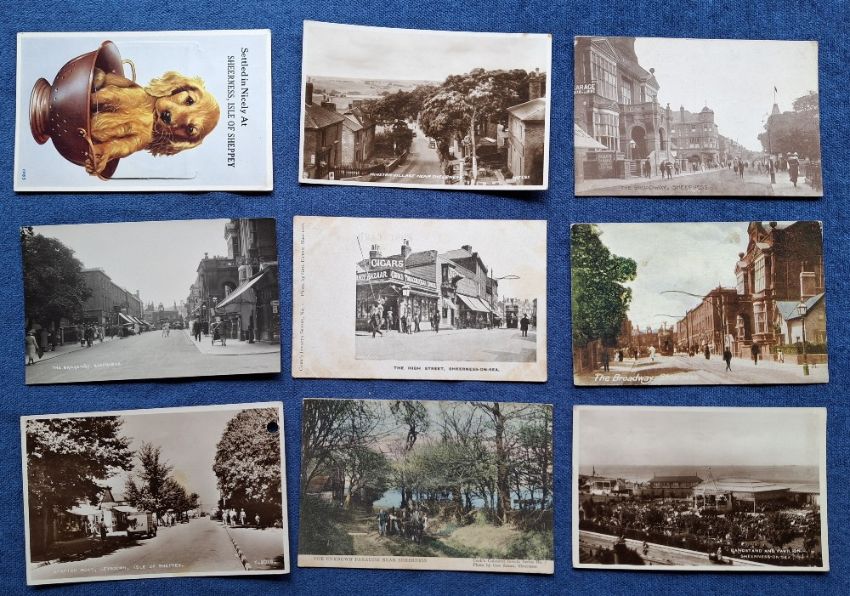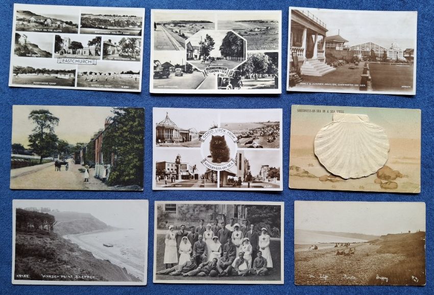 Postcards, Kent, Isle of Sheppey, 27 cards including Eastchurch Village Street scene RP, Queenborough Creek, Warden Lane nr Sheerness RP, Minster Multiview RP etc (fair/gd)