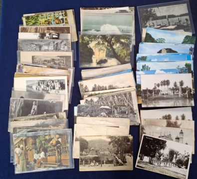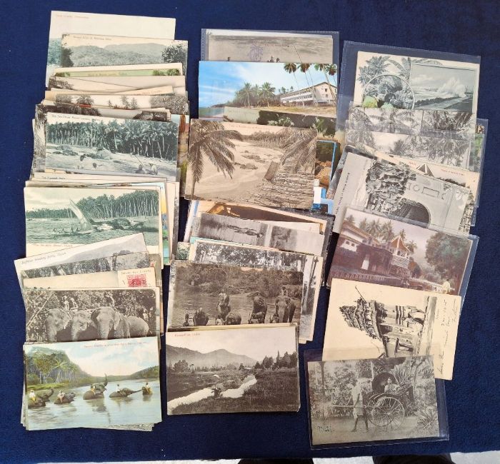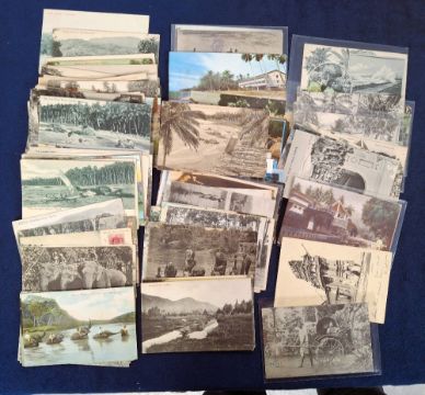 Postcards, Ceylon, over 208 cards with a few Malaya, many more interesting types noted including Street Scenes, Ethnic, Social History, Transportation etc. A few postally used, mostly unused (mixed condition mainly gd)