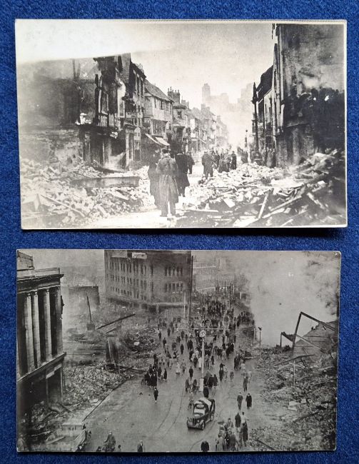 Postcards, West Midlands, Coventry, 7 RP cards showing the Extensive War Damage following the Air Raids, including one card of the King inspecting the aftermath of the damage (all unused, but slightly grubby backs, fair)