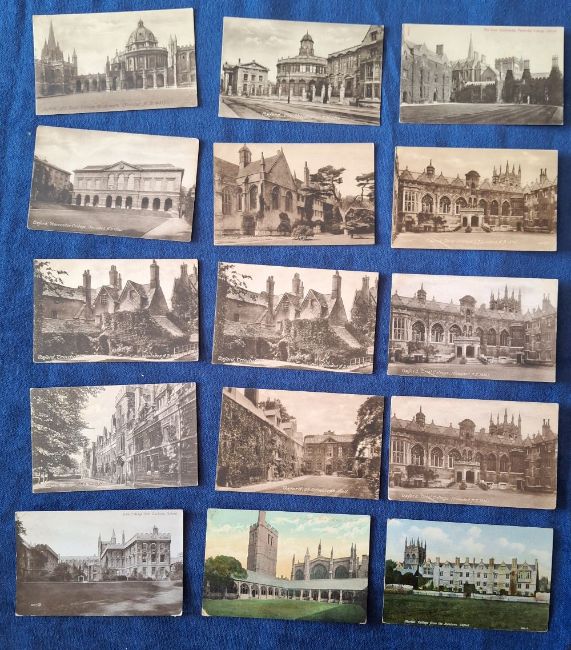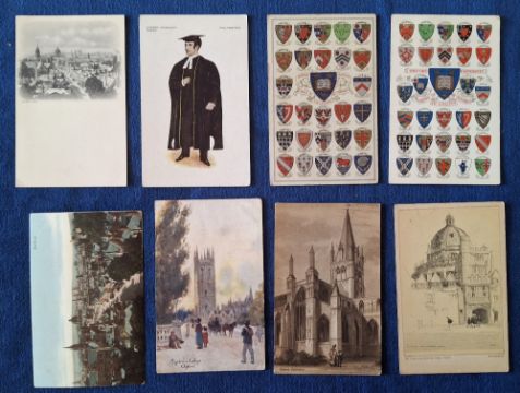 Postcards, Oxford, 98 cards mainly College Building Exteriors, a few general views including Oxford High Street etc (gen gd)