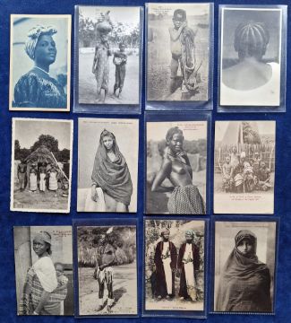 Postcards, French West Africa, approx. 125 cards to include ethnic portraits, village groups, villages, dancers, costumes, food preparation, townships etc. An interesting selection (gen gd)