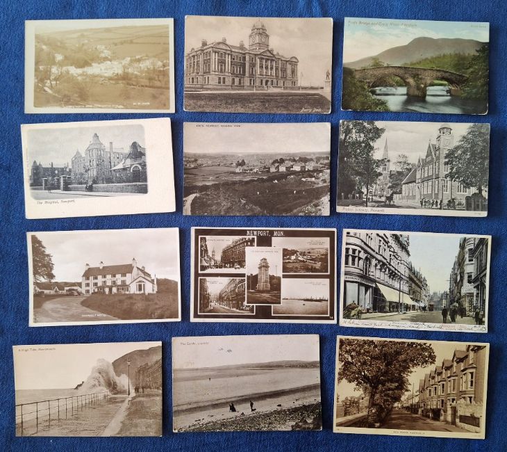 Postcards, Wales & Shropshire, 35 cards many better examples including several Newport Transport Bridge, Crickenhowell RP, Knighton Broad Street, Wynnstay Hotel Machynlleth, The Terrace Arthog, Pier Head Docks Cardiff, Ferraris Birds Llandudno, Commercial St Newport RP, Old Barry RP, Hillside Newgate RP etc (fair/gd many gd)