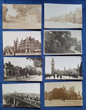 Postcards, London, 40 cards, some RP's including Palewell Park Sheen, Castelnau Barnes, Barnes Common, Barnes Village, Lonsdale Rd Barnes, Church Rd Barnes, Lowther Parade Barnes, Broadway Lower Mitcham, Sloane Square, Houses of Parliament (Lewis), Thames Embankment, London Bridge, Pall Mall, High St Kensington, HMS Buzzard, Victoria Embankment, The Queen's Beasts (set 10) etc (mixed condition gen fair/gd)