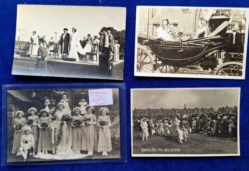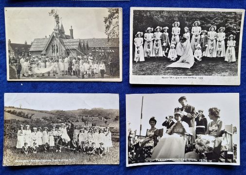Postcards, Social History, May Day Carnivals & Queens, 8 RP cards, Sedgeford Group, Bootle 1939, Wick 1924, Bootle 1922, Littlehampton 1958, Bramley 1935, Knutsford 1908, plus 1 unidentified location (Littlehampton card plain back, rest are p/c backs; fair/gd mainly gd)