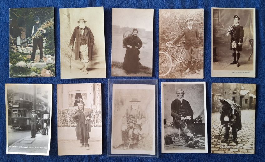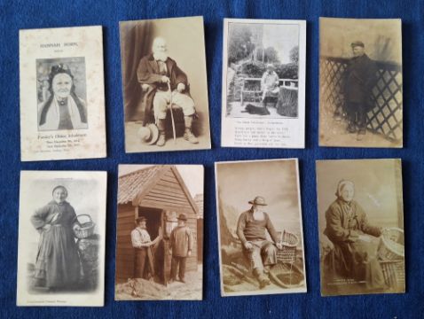 Postcards, Social History, 32 cards including Dwarves, Elderly Personalities, Hermits etc, many identified, some RP some printed, including Dwarf of Mablethorpe RP, AG Pratley, St Blazey Cornwall Dwarf RP, Tim Feather Hand Loom Weaver RP, Tommy on the Bridge Gateshead, Alice Grace Hermit, Little Eaton, Several Cullercoats Fishermen / Fisherwomen, Jack of Dungeness, Jimmy Dyer Cumberland Bard etc (fair/gd)