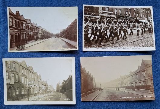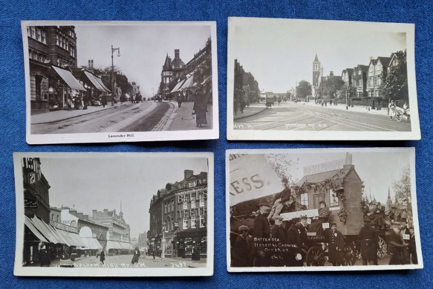 Postcards, London Suburbs, 15 cards all RP's, including Hazelberry Rd SW, Hurlingham Rd SW, Kelvedon Rd SW, The Colours marching past Balham PO, Ellaline Rd W, Crondace Rd & New Kings Rd SW, Mitcham Rd SW, Lavender Hill, Balham High Rd, Battersea Hosp Carnival 1907, Killarney Rd SW, Brixton Hill etc (fair/gd)