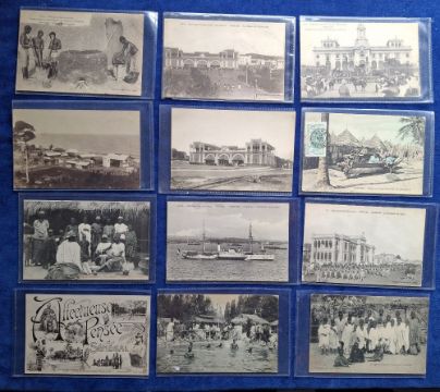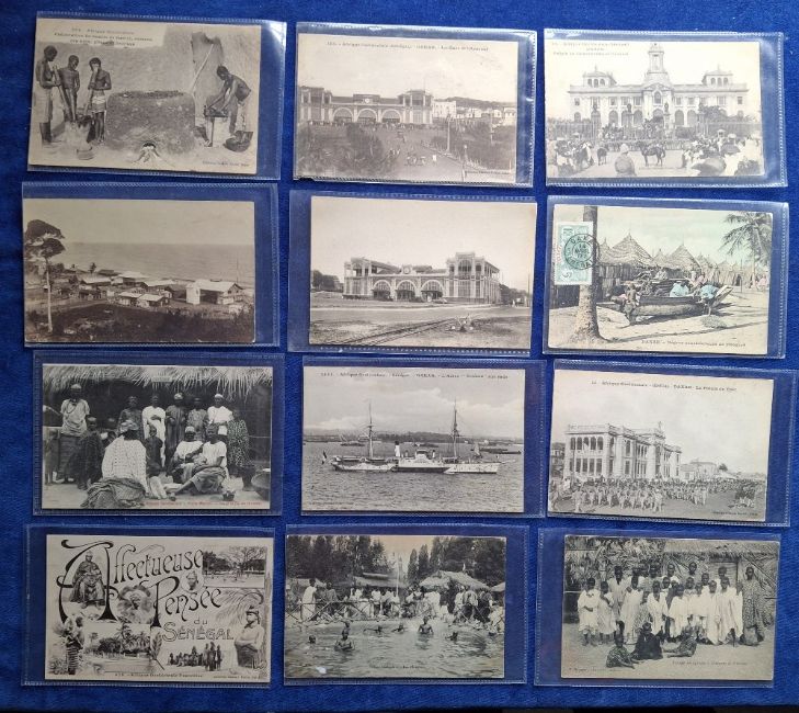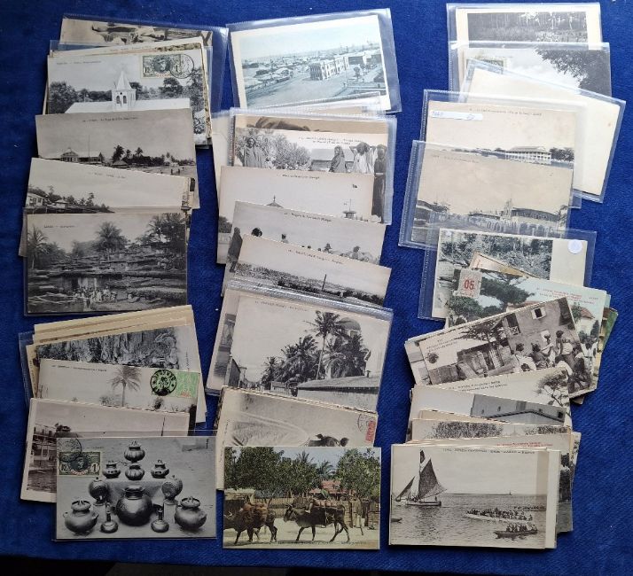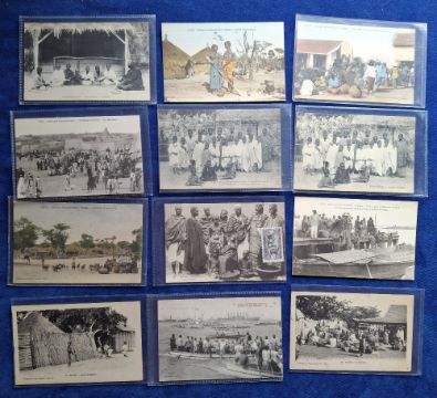 Postcards, Senegal and Togo, approx. 160 cards to include ethnic, military, markets, rail, paddle steamer, villagers, children, street scenes, fishing boats, drummer, weaver, tree bridge etc (gd)