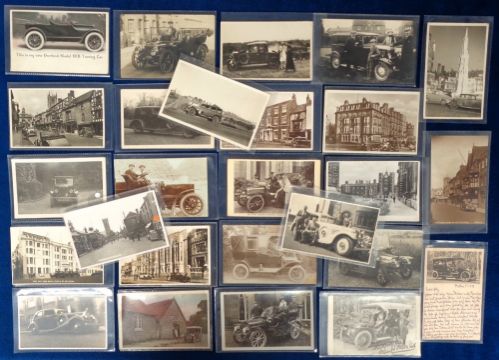 Postcards, Motor Cars, 50 photographic cards to include 1933 car show, private cars, town centres, advertising etc (gd)