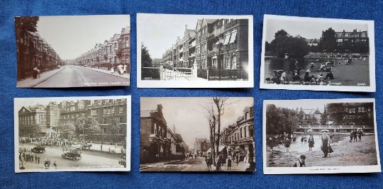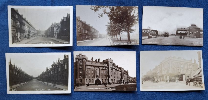 Postcards, London Suburbs, 24 cards, many RP's including Old Kent Road, Decorated Southwark Town Hall, Plashet Grove East Ham, Fulham Park The Sands, Ringmer Ave Fulham, Napier Court SW, Niton St SW, Peabody Dwellings Vauxhall Bridge Rd, Tournay Rd SW, Favart Rd Fulham, Studdridge St SW, Turnham Green Woolwich Ferry (7) etc (gen gd)