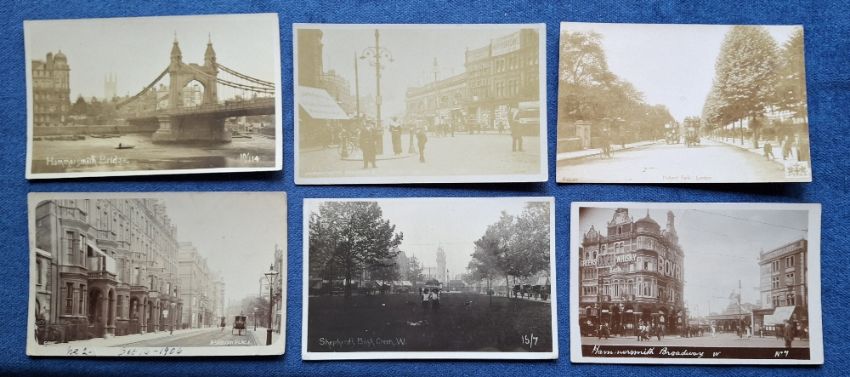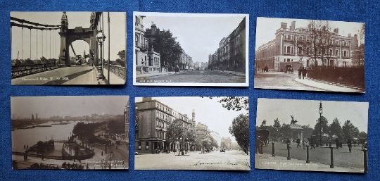 Postcards, London, 20 cards all RP's Central and Suburbs, including Sinclair Rd West Kensington, Queens Gate, Elvaston Place, Cromwell Rd, Hyde Pk Corner, Hammersmith Bridge, Kensington Pk gardens, Wallace Gallery, Asburn Place, Shepherds Bush Green, St Stevens Ave, Hammersmith Broadway (3 different), Pennard Rd etc (gen gd)