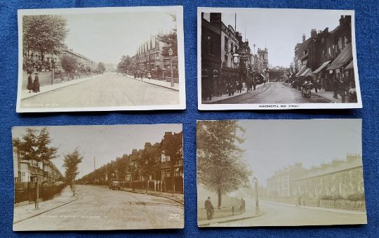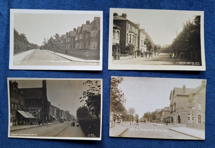 Postcards, London Suburbs, 20 cards all RP, including several Wandsworth; Bridge Rd, High St, Amerland Rd Trinity Rd etc. Also several Mitcham including Broadway Lower Mitcham, Mortlake Green, Melrose Ave, Fair Green, Great Storm Flood etc, Chesham Rd SW, Lydford Rd SW etc (gen gd)