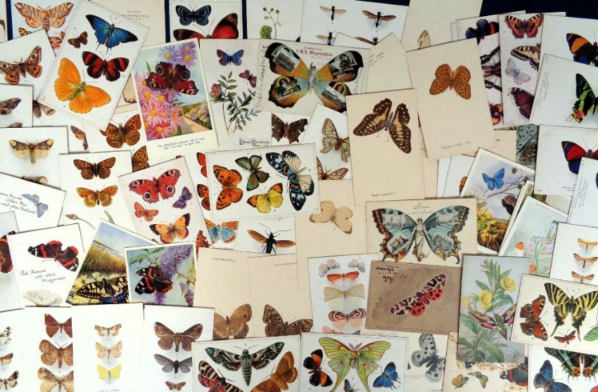 Postcards, Butterflies, Moths etc, 250+ cards to include embossed, hand embellished, Tuck's perforated cards, British Museum sets etc. An attractive selection (gd)
