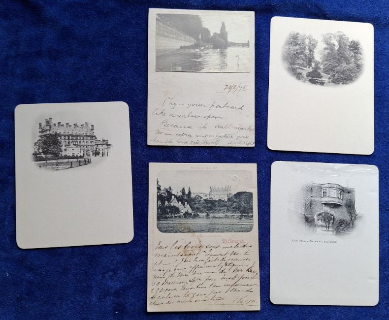 Postcards, Surrey, Richmond on Thames, 9 early Court sized Cards, 6 printed, 2 Chomo Litho colour, 1 RP (Photo stuck onto the Postcard) (5 postally used, 4 unused) (1 unused printed card is creased rest fair/gd mainly gd)