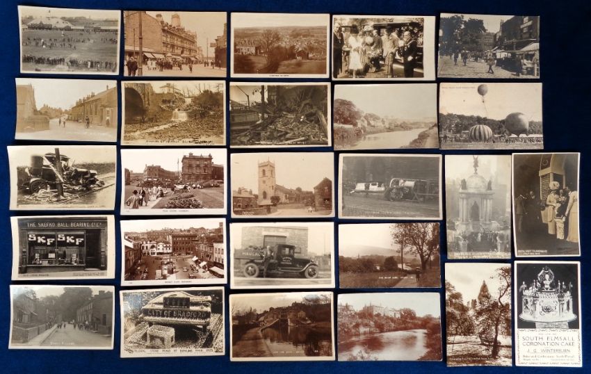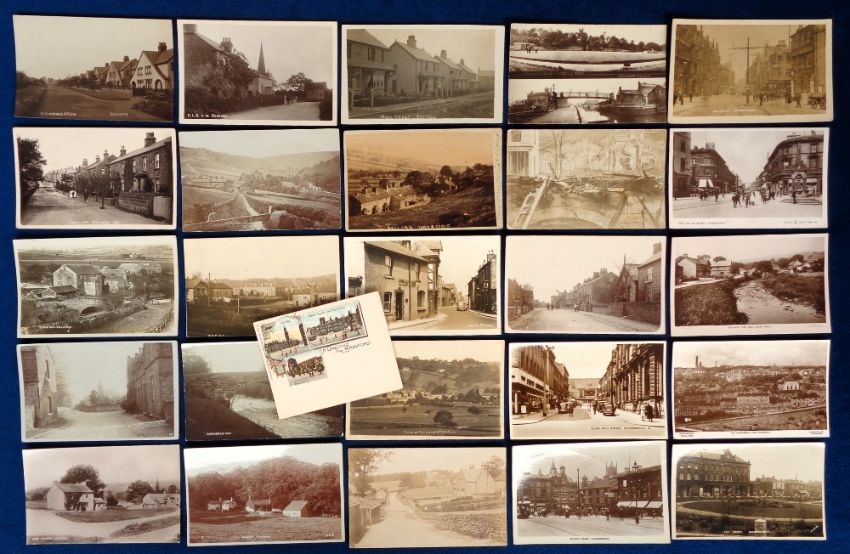 Postcards, West Riding of Yorkshire, 150+ cards showing a wide range of events, towns and villages to include County Show Rotherham, Cheapside Waltham, Fatal Motor Crash Stanningley, The Skefko Ball Bearing Co. Ltd. Shop front, Bursting of Aqueduct Barnsley 1911, Esholt, Elden Street Barnsley, Otley, Dewsbury, Dent, Bradford, Askham Richard, Nostell, Leeds etc. (gen gd)