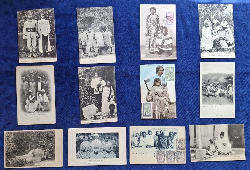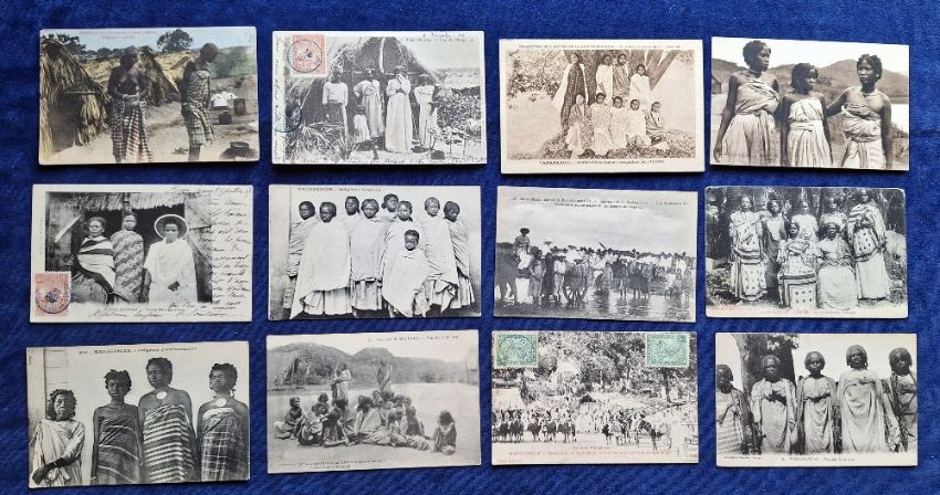 Postcards, Madagascar, 36 cards mainly family ethnic groups plus some Social History ones, including Making Straw Hats, Playing National Board Game, Agricultural Fair Fianarantsoa, Wood Market Tananarive, Making Bread in Street, Hairdressers, etc (fair/gd)