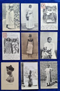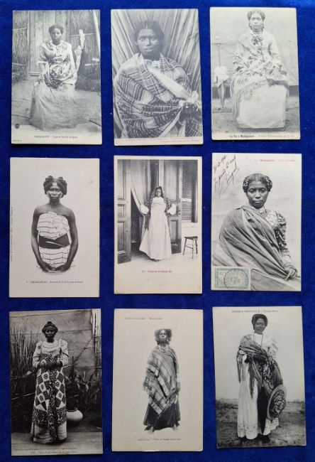 Postcards, Madagascar, 40 cards all ethnic types, 13 males and 27 female studies, mostly identified by region (fair/gd)