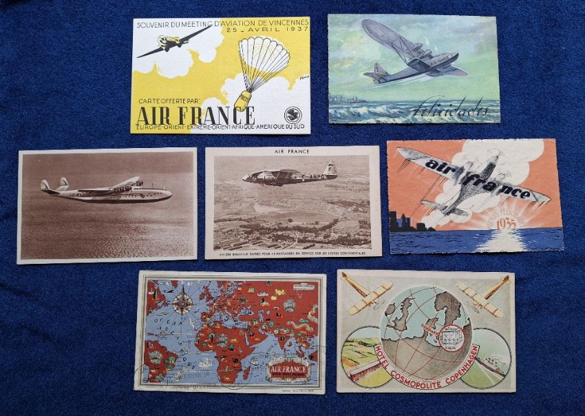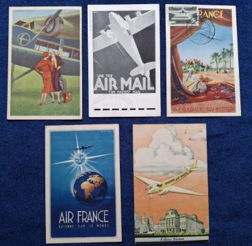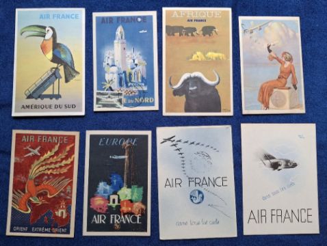 Postcards, Aviation advertising, Air France, 20 cards all related to the Airline, includes Poster Style, Maps, Aeroplane Studies etc (gen gd)