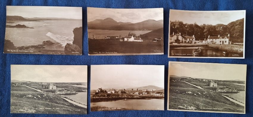 Postcards, Scottish Highland Islands, 12 cards, including Port Ellen from Manse Road (2), Caolila, The Harbour Port Askaig, Loch Boisdale etc (gen gd)