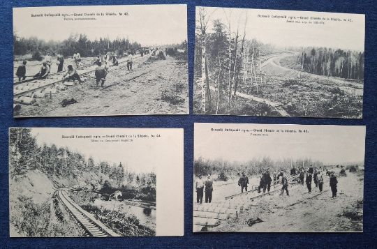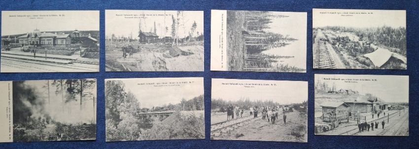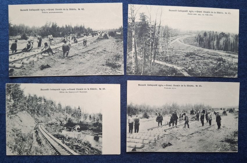Postcards, Siberian Railway, 52 cards including 44 printed cards covering the construction of the Siberian Railway, many animated social history scenes in connection with the construction, numbered 1 to 45 (missing no.10), plus 8 other Russian Railway printed cards (gen gd)
