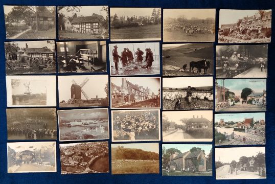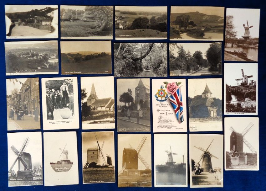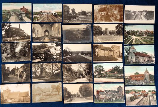 Postcards, Sussex 95+ cards to include Boreham Post Office, Slindon, Ardingly College Swimming Baths, Arundel Pageant, Homecoming of the Duke and Duchesse of Windsor Arundel 1904, Rye Hill and Military Road, Brookland Bazar, 1905 Brighton Motor Trials, Shoreham Airport, Fletching Street Mayfield, Sedelscombe, Faygate Station, High Street Steyning, Midhurst King Edward's Sanatorium Lady Gardeners etc. (gd)