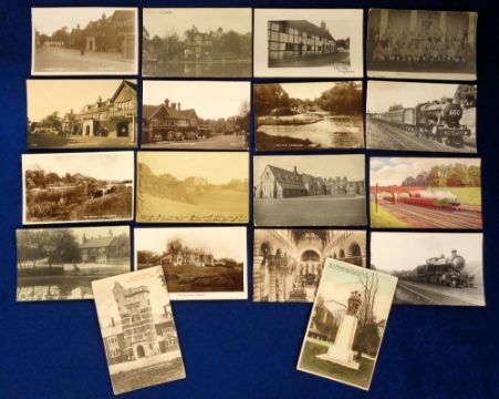 Postcards, Berkshire, 34 cards featuring Winnersh, Finchampstead, Burghfield, Warfield, Sonning, Sindlesham, Sandhurst, Pangbourne and Purley (gen gd)