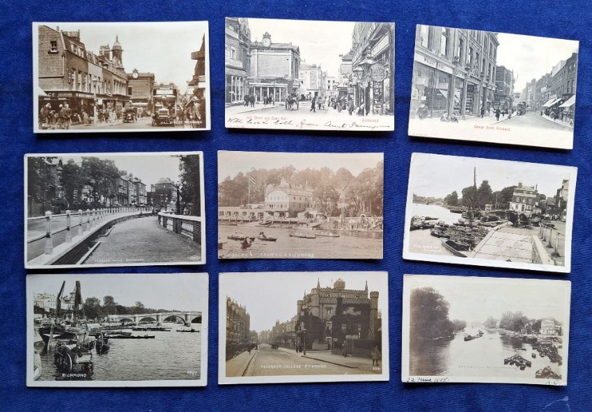 Postcards, Surrey, Richmond on Thames, 30 postcards including RP Street Scenes The Green, Petersham Road, Church Rd, Richmond Hill Rise, Princes Rd, Several Views of The Thames and Riverside scenes, Ellerker College RP etc (fair/gd)