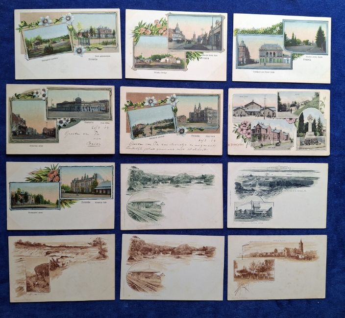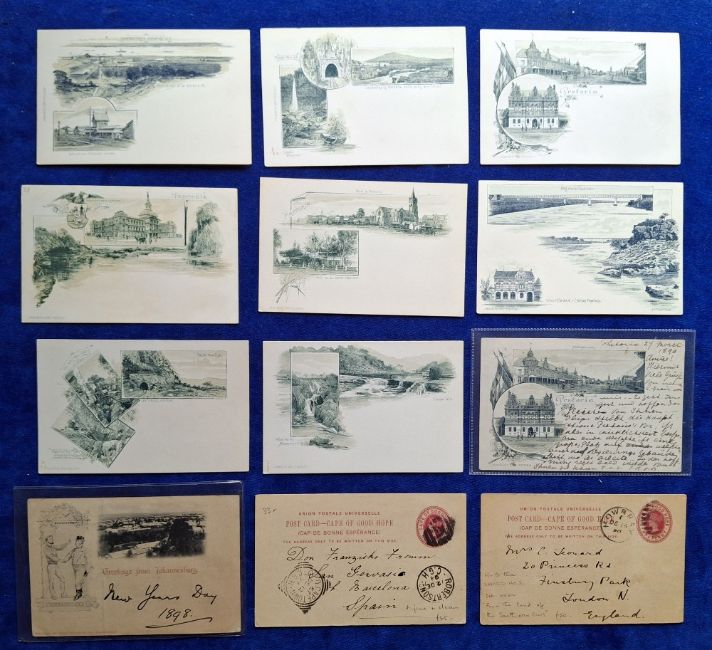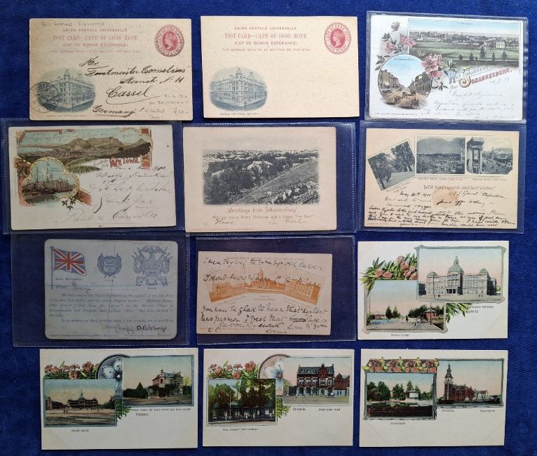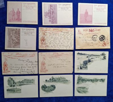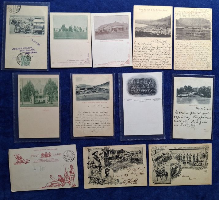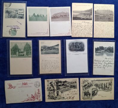 Postcards, Boer War, approx. 110 cards RPs, printed and artist drawn to include JH Debussy drawn scenes inc. scarce Lourenco Marques, Grus Aus, many SAPRG researched, Luthje's Langham Hotel, The Greay Strike on The Rand, Commemoratives inc. 'Remember Gordon' and much more (gen gd)