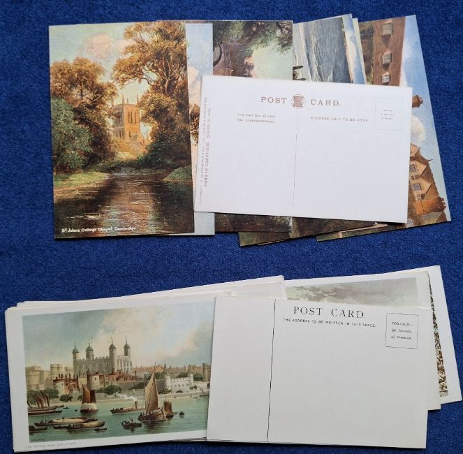 Postcards, Miscellaneous Subject cards, 69 cards, colour printed cards including 4 sets of 6 cards; Tuck (3) Blush of Eve II, Eastbourne IV, Rembrandesque, Davidson Bros Moonlight Series, plus Hildesheimer Cambridge (9), J Ruddock London Views (12), Tuck Eastbourne III (4), Anonymous publisher London / Lake District views (20) (fair/ mainly gd)