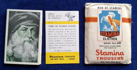 Trade cards, Stamina Trousers, selection, approx. 100 cards including set 24R Famous Authors Artists Composers (set 16), part / near sets including Men of Stamina (different series), Men of Stamina Careers, Stamina on the Sea etc (gen gd a few fair)
