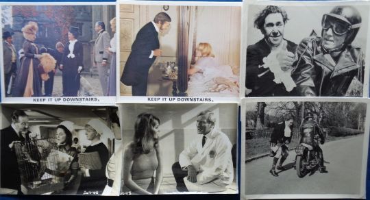 Lobby Cards, from British Comedies, ''Battle of the Sexes' (6) 1959 with Peter Sellers, 'Keep It Downstairs' (8) 1976, 3 stills from 'Doctor In Clover', 4 stills of Peter Butterworth in 'Ouch!' 1967, and 3 other lobby cards (1 creased) (24)