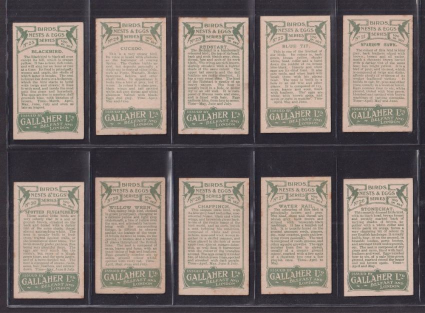Cigarette cards, Gallaher, Birds Nests & Eggs (set, 100 cards) (some with slight marks, gen. gd)