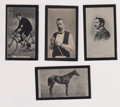 Cigarette cards, Smith's, Champions of Sport (Red Multi-backed), four cards, no 3 W. Mitchell, Billiards, no 8 Flying Fox, Derby Winner, no 15 Bocquillon, Cyclist & no 39 M.A. Holbein, Cyclist (gd/vg) (4)