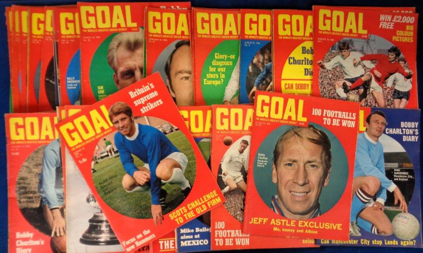 Football magazines, a collection of 160+ issues, Soccer Star (Dec 1962 to Dec 1968) approx. 110 issues, incomplete run, sold with 'Goal' 52 issues with nos ranging between no 1 (Aug 1968 x2) through to no 100 (Jul 1970) (gd)