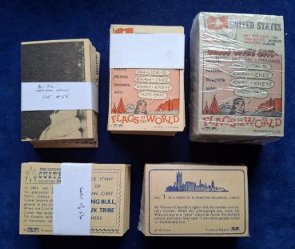 Trade cards, A&BC Gum, 5 sets Man from UNCLE, Legend of Custer (54), Flags of the World (both XL and L sizes), Winston Churchill (gen gd/vg)