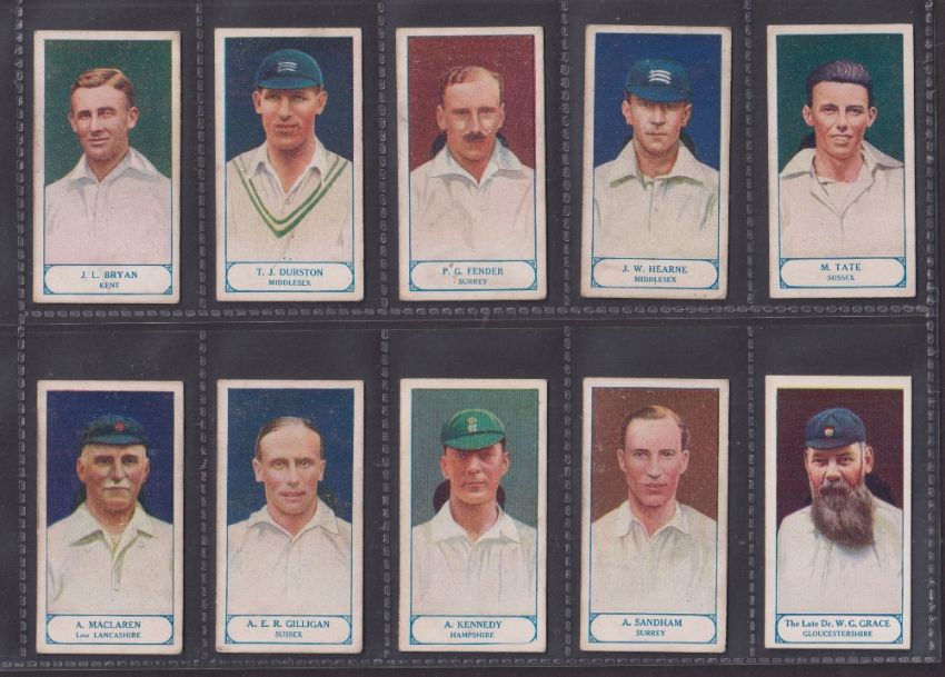 Cigarette cards, Pattreiouex, Cricketers Series (68/75, missing nos 6, 16, 19, 42, 44, 46 & 53) inc. The Late Dr. W.G. Grace & C.B. Fry (both vg) and Hobbs (gd) (most with slight marks, gen, gd, some vg) (68)